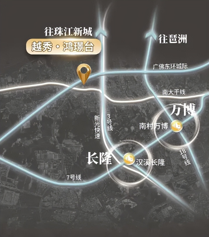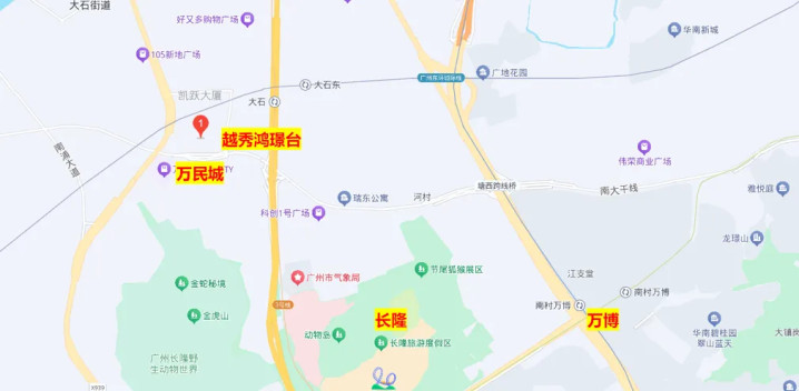 越秀鸿璟台位于番禺大石板块,距离大石地铁站500米左右,